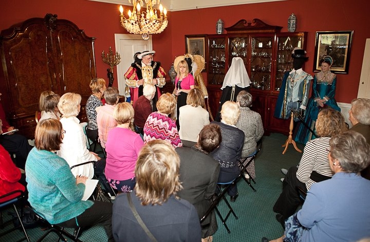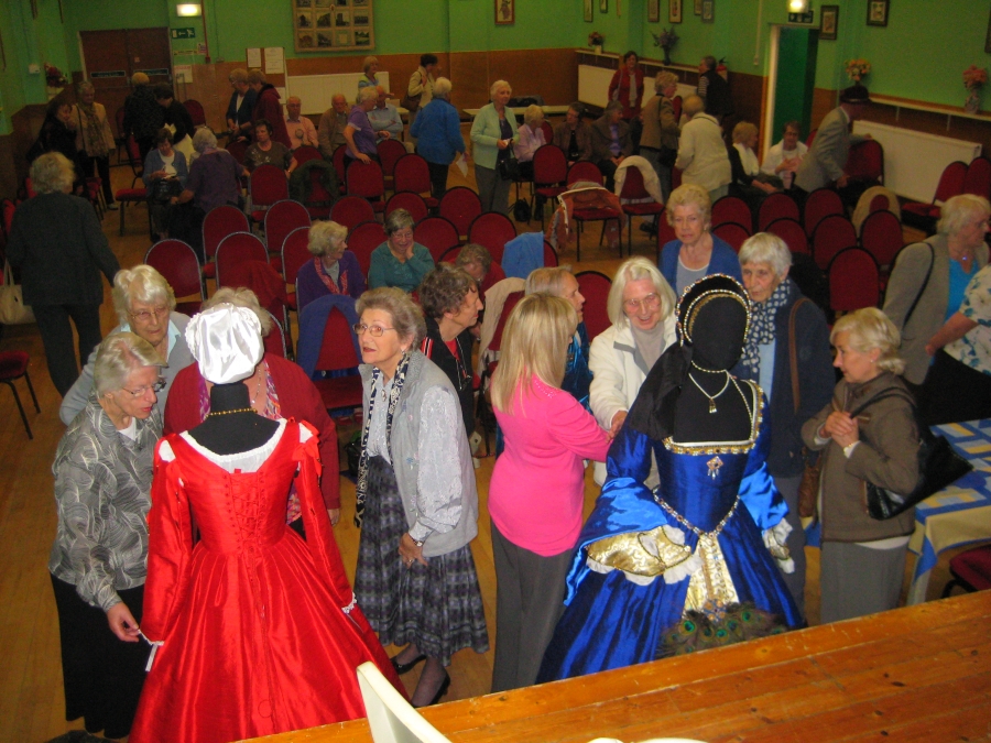 In Stockton in Teesside I organised an exciting ‘Tudor Fashion Show’ to celebrate the reopening of the splendid new Stockton Central Library. We also presented a fabulous Fashion Show for the SWRI (Scottish Women’s Rural Institute) at the second largest concert venue in Edinburgh, the aptly named Queens Hall. It was a great success with over three hundred members attending our show.