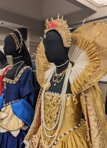 Fabrics and clothes for royalty were very expensive in the 16th Century – no mass production or cheap machine made fabrics. The King’s gold doublet embroidered and embellished with expensive jewels and it would cost in the 16th Century the equivalent of a small Tudor house.